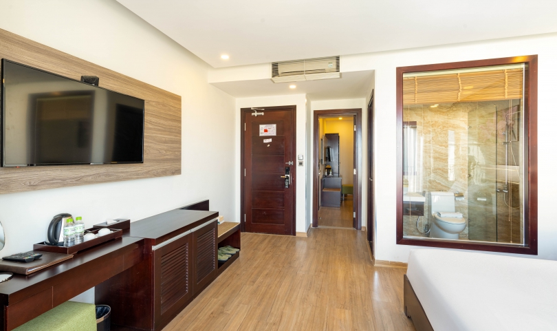 The connecting rooms are ideal for families with children. These rooms consist of two double rooms with a connecting door. One of the rooms has a balcony overlooking the sea and the other has no window. Each room has its own bathroom with shower, safe, fridge, free WIFI and flat-screen TV. It is the ideal option for families or a large group of friends. Staying close to your loved ones is more important than ever, while offering distinct space for personal time.