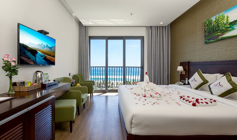 Immerse stunning view of sky, mountain and ocean through the Balcony Sea View Room. Our balcony rooms will give you an unforgettable, luxury experience of waking up to an amazing view of the sun rises from the East Sea. A sweet room option for honeymooners or anniversary occasions.